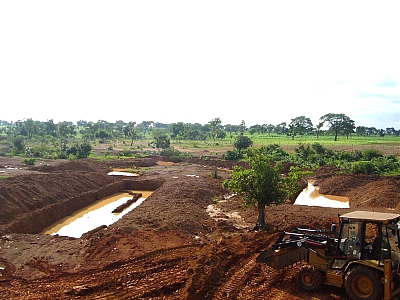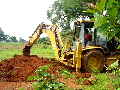 Backhoe excavating for pit sampling |
